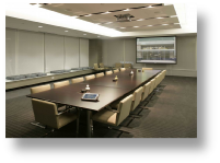 sound systems, translation systems microphones and speakers, flip charts, large screens,